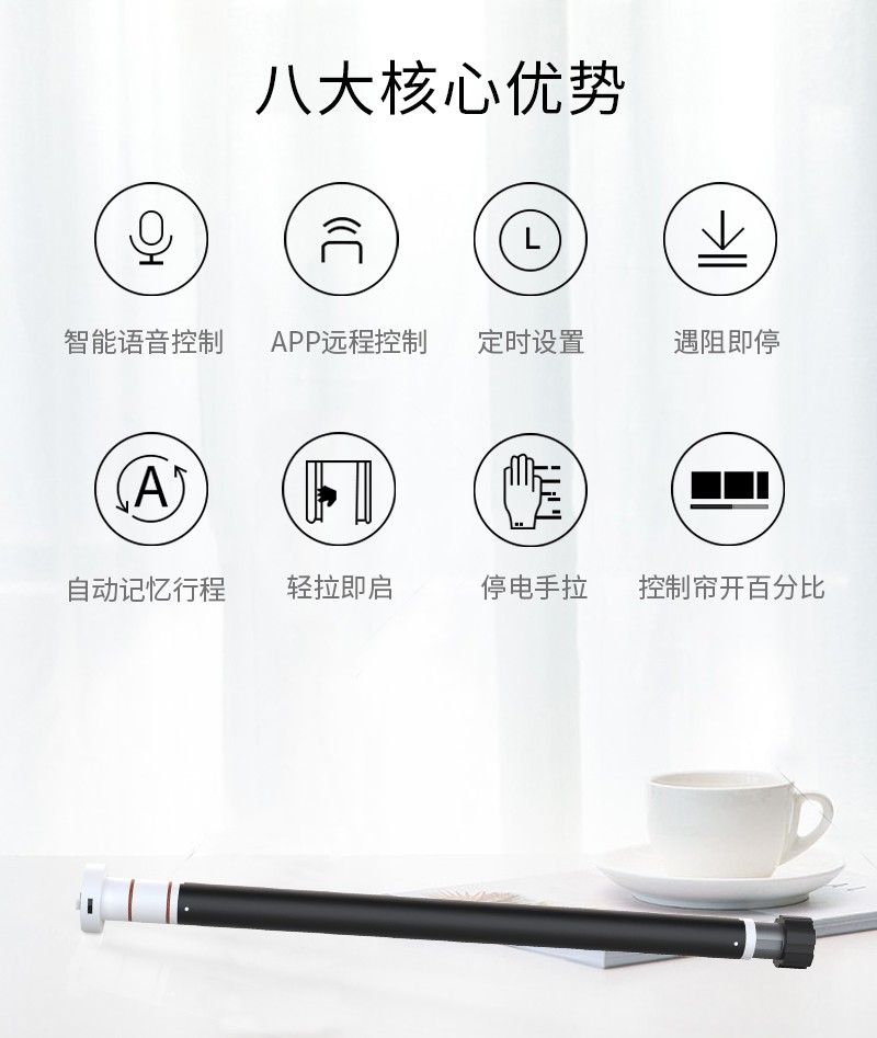 無線窗簾WIFI語音控制神器涂鴉智能電動(dòng)窗簾伴侶羅馬桿窗簾助力器