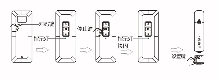 4 連續(xù)點按電機(jī)【設(shè)置鍵】兩次的規(guī)定:點按第一次,當(dāng)電機(jī)【指示燈】閃一次紅燈后,再按第二次。